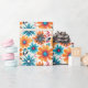 A fabulous boho flower wrapping paper. This colourful 70's vibe floral design features bright colourful flower power florals in orange and blue. A gorgeous retro gift wrap design that will stand out from the crowd.