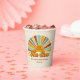 These fun, stylish baby shower paper cups feature a hand drawn boho sunshine in retro shades of terracotta, gold yellow, and aqua. Vintage / Retro styled typography reads, "Here Comes the Son," a cute word play that's perfect for a baby boy on the way! A textured overlay adds to the vintage look! *Original Illustration by Orabella Prints.