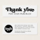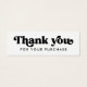 Thank you for your purchase mini insert card with white text "Thank you" in a retro style font. Black (or custom colour) text on a white (or custom colour) background. Add your own logo on the back. You can change colours, move and resize elements with the design tool.
