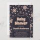 Make a bold and elegant statement with this retro boho baby shower invitation featuring a rich navy blue background and warm neutral floral accents. Designed with playful vintage daisy patterns and a trendy arch layout, this invitation blends modern sophistication with a groovy retro aesthetic.