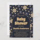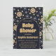 Make a bold and elegant statement with this retro boho baby shower invitation featuring a rich navy blue background and warm neutral floral accents. Designed with playful vintage daisy patterns and a trendy arch layout, this invitation blends modern sophistication with a groovy retro aesthetic.