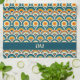Retro Boho Orange Blue Sun Pattern Monogram Tea Towel