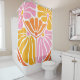 A pretty orange gold pink floral pattern in a retro boho 70's style bathroom shower curtain.