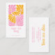 Boho colourful 70's style retro pink gold orange floral business cards with retro flourished typography. A 60's and 70's style vibe. Vibrant and pretty.
