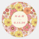 Retro Boho Pink Yellow Floral Wedding Monogram Classic Round Sticker