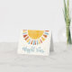 This charming card features an adorable boho design with a watercolor sun, set against a soft vintage white background. The muted colours of yellow, orange, and blue, combined with the retro font, create a nostalgic vibe. Personalise the card with your own message to thank your guests for their love and support.