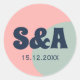 1970s vintage retro groovy waves personalised wedding monogram sticker in groovy bold typography and pastel colours including; pink and blue. This sticker is easily editable. If you need help with the customisation of this product or you need more matching products for this collection kindly message me via Zazzle.