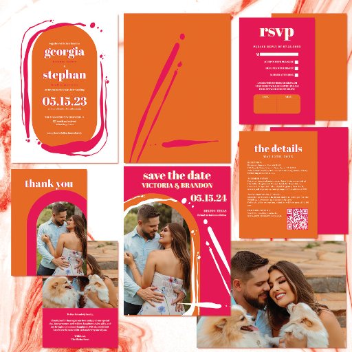 Retro Bold Neon Orange Pink Abstract Wedding SuiteDesigned by Rachel Matheney