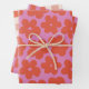 Retro Bold Pink and Orange Floral and Checks Wrapping Paper Sheet
