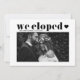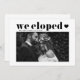 Modern yet classic wedding elopement photo flat card. It features retro bold typography and heart overlay. This photo elopement flat card will be perfect for any wedding theme. Personalise by adding your favourite horizontal photos.