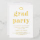 Invite family and friends to your graduation with this customisable gold foil pressed grad party invitation. It features retro bold typography. Personalise this gold foil graduation invitation by adding your event details. This modern graduation party invitation is available in other foil colours.
