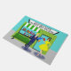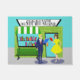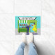 Attention, all bookworms! This Retro Book Lovers Door Mat is the design for you. This 1960's style, minimalist art, cartoon drawing features a quaint Mum and Pop bookstore. It's the kind of shop with a helpful staff--where browsing is encouraged and shelves are stocked with everything from current bestsellers to obscure first editions. The green, stone building looks as if it has always been a part of the town's landscape. It has a green and white awning over an aqua window filled with colourful books just waiting to transport readers to other times and places. Step through the aqua door to find your next adventure. A bright, green bench on the front walk offers the perfect spot for "taking a load off." The sign above the store says, "The Shop Around The Corner." Today, on the front walk, it looks as if love is just around the corner for a couple of unsuspecting bibliophiles. We see a fair haired man in a navy suit and red necktie with his nose in a bright, blue book. Walking in the opposite direction, we see a brunette woman in a lemon, yellow dress. She is entranced in her own red-bound page turner. Perhaps they each need to use their black framed glasses to watch where they are going. If this were a romantic comedy, this would be their meet-cute. If we stick around, we are sure the witness the opening passages to this future couple's "happily ever after."
