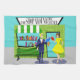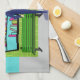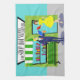 Attention, all bookworms! This Retro Book Lovers Kitchen Towel is the design for you. This 1960's style, minimalist art, cartoon drawing features a quaint Mum and Pop bookstore. It's the kind of shop with a helpful staff--where browsing is encouraged and shelves are stocked with everything from current bestsellers to obscure first editions. The green, stone building looks as if it has always been a part of the town's landscape. It has a green and white awning over an aqua window filled with colourful books just waiting to transport readers to other times and places. Step through the aqua door to find your next adventure. A bright, green bench on the front walk offers the perfect spot for "taking a load off." The sign above the store says, "The Shop Around The Corner." Today, on the front walk, it looks as if love is just around the corner for a couple of unsuspecting bibliophiles. We see a fair haired man in a navy suit and red necktie with his nose in a bright, blue book. Walking in the opposite direction, we see a brunette woman in a lemon, yellow dress. She is entranced in her own red-bound page turner. Perhaps they each need to use their black framed glasses to watch where they are going. If this were a romantic comedy, this would be their meet-cute. If we stick around, we are sure the witness the opening passages to this future couple's "happily ever after."