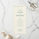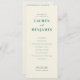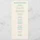 This is a minimalist style image featuring an elegant wedding ceremony program for Lauren and Benjamin. The design uses a soft, pastel green color palette on a light beige background, creating a serene and sophisticated atmosphere. The text is neatly organized with classic typography that adds to the timeless feel of the event. It details each part of the ceremony, from the procession to the recessional, making it both informative and aesthetically pleasing. Perfect for couples who appreciate simplicity and elegance in their special day.