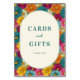 This is a floral style image featuring an elegant oval frame filled with the words "Cards and Gifts" in a sophisticated font, followed by "Thank You" in smaller letters. The background is adorned with vibrant flowers in shades of pink, orange, yellow, blue, and green, creating a cheerful and welcoming atmosphere. It feels like a warm embrace of gratitude, perfect for expressing thanks through beautifully designed cards or gifts. Ideal for occasions where you want to convey appreciation with a touch of nature's beauty.