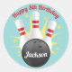 Your guests will be impressed with this vintage design sticker for your child's next tenpin bowling party!