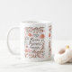 Retro branches and pumpkins fall Friendsgiving mug. It is adorned with beautiful branches, delicate leaves, and charming pumpkins that gracefully cascade down its sides. The design, reminiscent of a bygone era, showcases a vintage aesthetic with its muted fall colours. On both sides of the mug, you will find this delightful frame made of branches, leaves, and pumpkins, along with the heartwarming text "Happy Friendsgiving." To add a personal touch, the mug also includes the option to have the year personalised, making it a truly special keepsake for this Thanksgiving season. The cover has been designed using some assets from Freepik.com