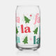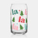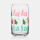 This playful glass features Retro Bright Christmas Tree icons and text that says "Fa, La, La, La, La." Colours include pink, red and green.