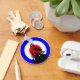 Italian styling meets British culture to produce an icon. Ideal gift for any scooter boy or scooter girl.. Design features a retro mod rider on his scooter enclosed by the iconic red white and blue mod target