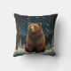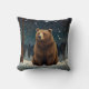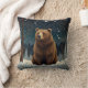 Retro brown bear midnight winter landscape throw pillow.