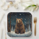 Retro brown bear midnight winter landscape paper plate