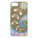 Retro brown paisley motif custom iPhone 6 design featuring a paisley motif in turquoise, brown with yellow flowers on purple background. This retro/vintage style feminine design is a great gift for women.