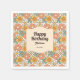 Retro Brown Peach Floral Groovy Birthday Napkin
