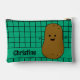 Adorable accessory bag featuring a cute happy cartoon brown potato. The background is a cute retro pattern of a black grid over a solid bold teal colour. A template at the bottom and left to the potato to add your name.