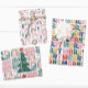 Bright colours and retro bubble letter fonts make these festive and fun! These patterns include Evergreen trees, pink bows and rainbows.