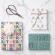 Retro Bubble Letter Reindeer Christmas Custom Wrapping Paper Sheet