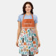 Multi coloured apron perfect for fall with a pattern of flowers, leaves, and bugs in a whimsical style. Add your name and monogram on the orange top of the apron.