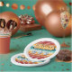 Host a retro themed Bunco night and include these colourful stylish paper products. Fun way to have fun with other Bunco players. Features retro colours and dice.
