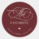 Retro Burgundy Ivory Her Favorite Wedding Favor Classic Round Sticker