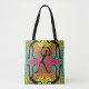 Add a splash of retro charm to your everyday carry! This eye-catching tote features a kaleidoscope of abstract starburst shapes in bold, vivid colours layered over earthy olive greens and neutrals. The design evokes a groovy mid-century modern vibe with a funky twist — perfect for standing out at the market, school, or a gallery stroll.