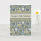 Business from all of us birthday card featuring a colourful blue retro pattern and fun text. Perfect for employees. Customisable, also available in other cards.