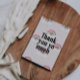 The quality is top notch and I love the personalition and script of these beautiful cards! I use them for gift baskets that I give out to clients. They are larger than a thank you card and won’t get lost in a basket. High quality and the colors are great!
