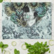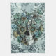Retro butterfly rose skull in blue, green and yellow colour tones.
