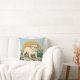 This reversible coastal blue throw pillow is the perfect addition to your beach home decor. The retro-inspired surf art features a too-cool bulldog who rides an endless wave in front of the golden sun. Designed with old-school California energy, the distressed look gives it an authentic feel, like it was pulled straight from a vintage surf shop. On the reverse is a repeating classic surfboard pattern inspired by coastal surf culture with sun-bleached boards, vintage blues, weathered yellows, and faded reds you’d see stacked outside a surf shop or leaning against a fence after a long session. Change the look depending on your mood! | Matching throw blanket available in store.