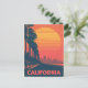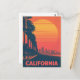 Send a piece of the Golden State with this retro-style postcard. It features a vibrant illustration of a classic California scene, with a road lined with palm trees leading towards a city skyline at sunset. This postcard is perfect for sharing the sunny vibes of California with friends and family, as a memento of a trip, or as a small art print for your home. The vintage design adds a cool, nostalgic touch that's sure to be loved.