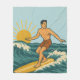 Retro California Surfer | Coastal Blue Surf Beach Fleece Blanket