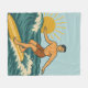 This sunny throw blanket is the perfect soft and cozy addition to your beach home decor. The retro-inspired surf art features a surfer dude riding an endless wave beneath the blue sky and shining sun. Designed with old-school California energy, the distressed look gives it an authentic feel, like it was pulled straight from a vintage surf shop. | Matching throw pillow available in store.