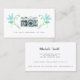 A photography business card featuring a retro camera at its focal point, surrounded by two delicately painted blue watercolor flowers, creating a visual masterpiece that reflects your artistic flair.