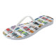 Funky colourful flip flops with retro camera pattern.