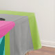 This Retro Camper / Trailer and Car Tablecloth features a mid century modern, minimalist cartoon drawing that will leave you ready to take to the open road. An homage to the 1950s, this design features a vintage turquoise car with white top, pulling a kitschy travel trailer to its final destination. The perfectly restored, retro RV has a hot pink lower half, white top half, and a turquoise lightning bolt separating the two. The door in the side of the camper is also turquoise. The final accent is the hot pink wing protruding from the back of this home on wheels. The happy campers are motoring down a grey road. The roadway is surrounded by lush, green grass. In the background, we can see the teal silhouettes of a veritable forest of cedar trees, against an aqua sky with puffy, light blue clouds. This design is perfect for everyone from retired hippies, fledgling hipsters, or anyone who wants to relive some great childhood memories. The best part is that no one is asking, "Are we there yet?"
