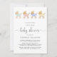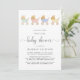 This cute gender-neutral virtual baby shower invitation features a parade of pastel mint green, blue, pink, yellow and gold retro baby carriage watercolors and "baby shower" written in a stylish contemporary script. You can easily personalise the virtual shower details.
