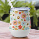 Retro Cartoon Flowers Whimsical Happy Fun Thermal Wine Tumbler features a retro whimsical colourful cartoon face flower and leaf pattern in pink, orange, yellow, blue, green and white. Fabulous gift for here for birthday, Christmas, holidays, Mother's Day, sisters, besties and more. Designed by ©2024 Evco Studio www.zazzle.com/store/evcostudio