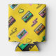 70's, 80's cassette tape vintage retro background. Fashionable poster simple graphic old style with heart and flash. Disco love party 1980. Yellow banner Easy editable design for Your design.