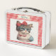 Introducing my delightful Retro Cat lunchbox, the purr-fect blend of nostalgia and charm! With its vibrant red and cream stripe background reminiscent of classic retro designs, this lunchbox is a true standout. The lunchbox showcases an adorable illustration of a charismatic cat, capturing the essence of timeless feline allure.
