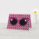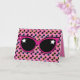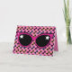 A pair of vivid pink illustrated sunglasses is set against this cool retro pattern composed of sunglasses in a cat style from the 1960’s in shades of pink, blue and yellow in this fun birthday card for a sister.