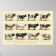 This retro colour graphic was derived from an antique black and white print of vintage cattle breeds art by Adolphe Millot. You can customise the background colour.